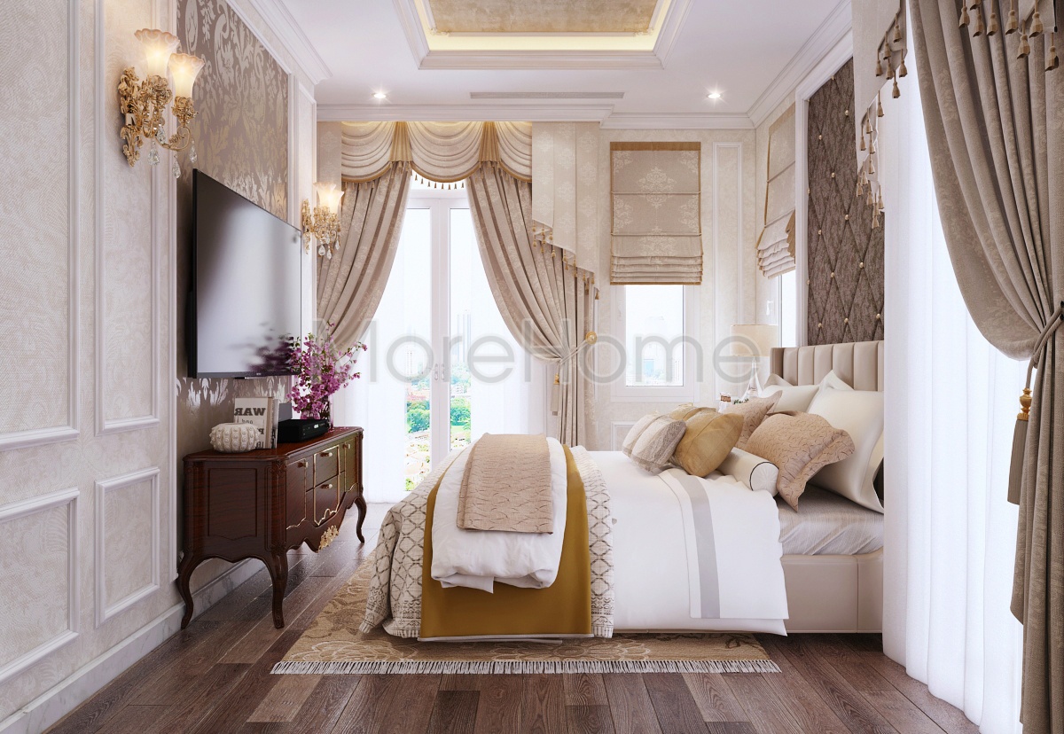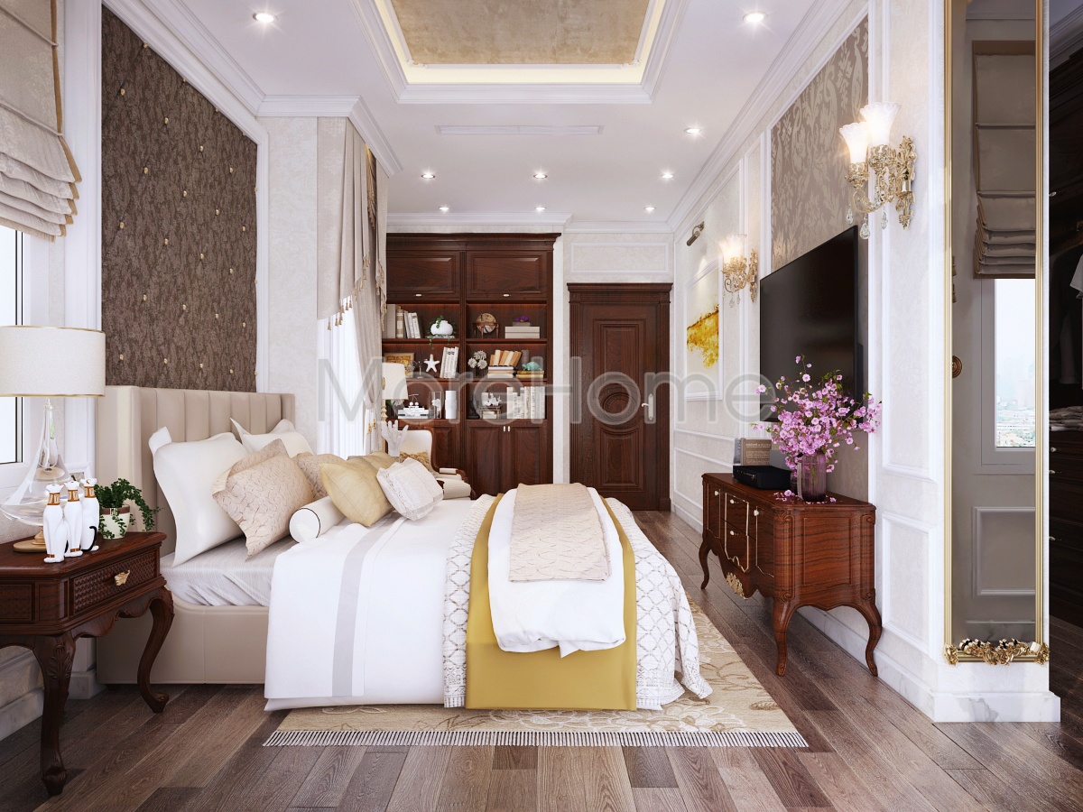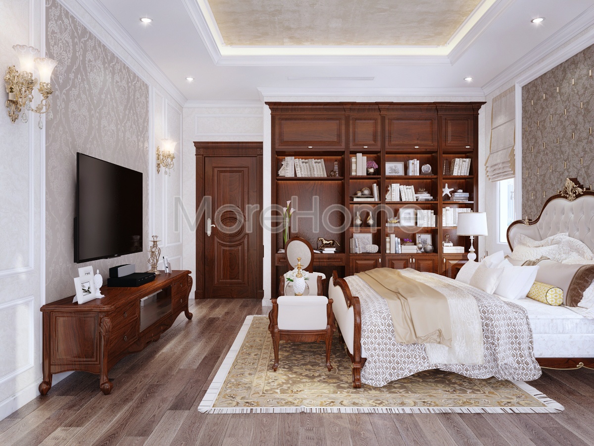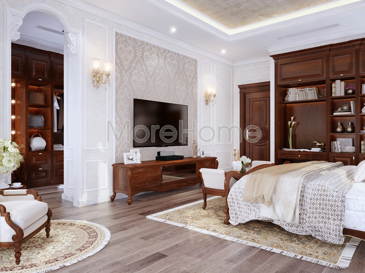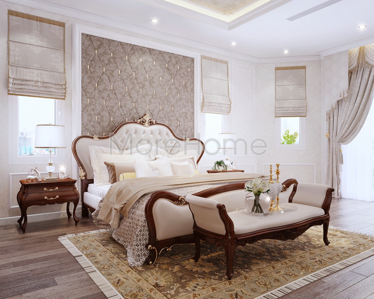 Các mẫu giường gỗ óc chó tại biệt thự Phan Thiết đẳng cấp mang phong cách tân cổ điển, chất liệu gỗ óc chó cao cấp đã tạo ra những mẫu giường gỗ sang trọng với những đường nét uốn lượn mềm mại mà tinh tế đẳng cấp